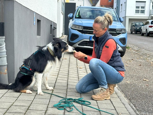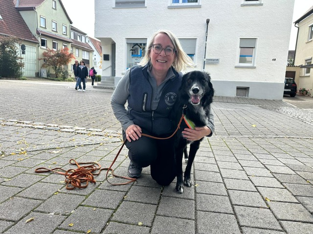 Tanja mit ihrem Border Collie Stout
