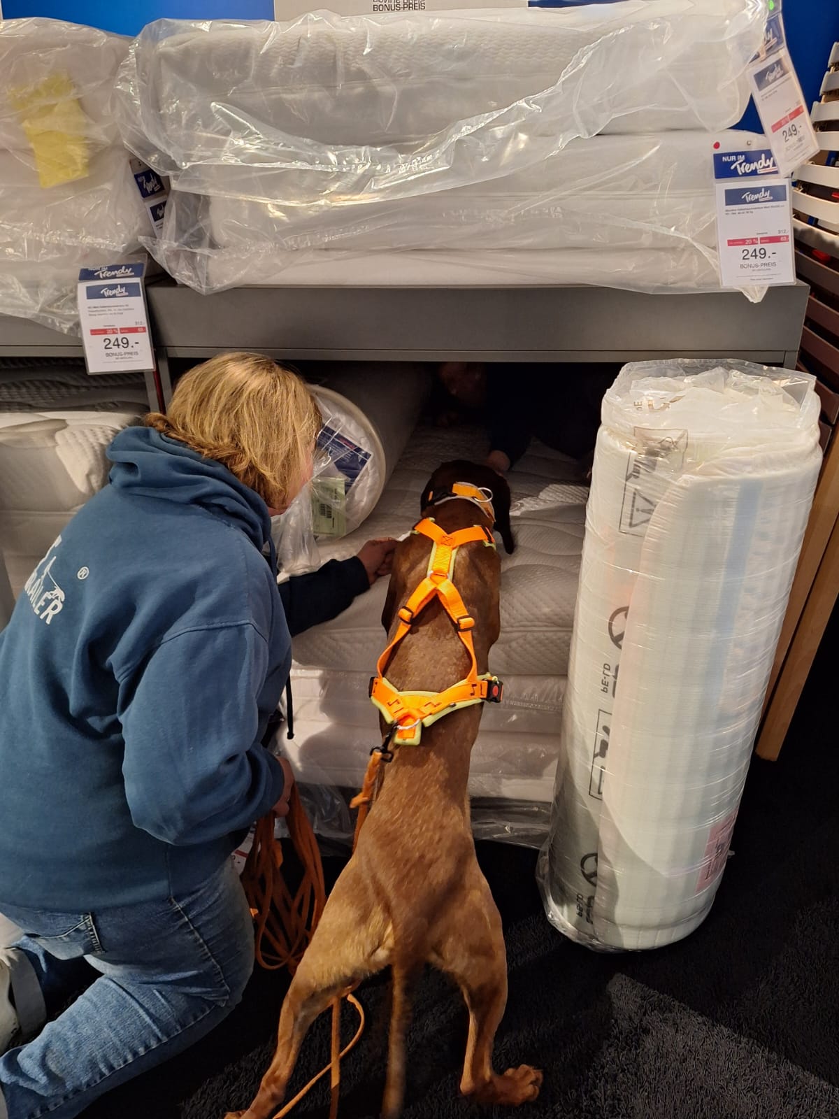 Die vielen Gerüche und der Publikumsverkehr waren eine große Herausforderung und entsprechend ausgelastet waren am Ende alle Vierbeiner. Beim anschließenden Besuch in der Cafeteria konnten sich alle über das Erlebte austauschen.